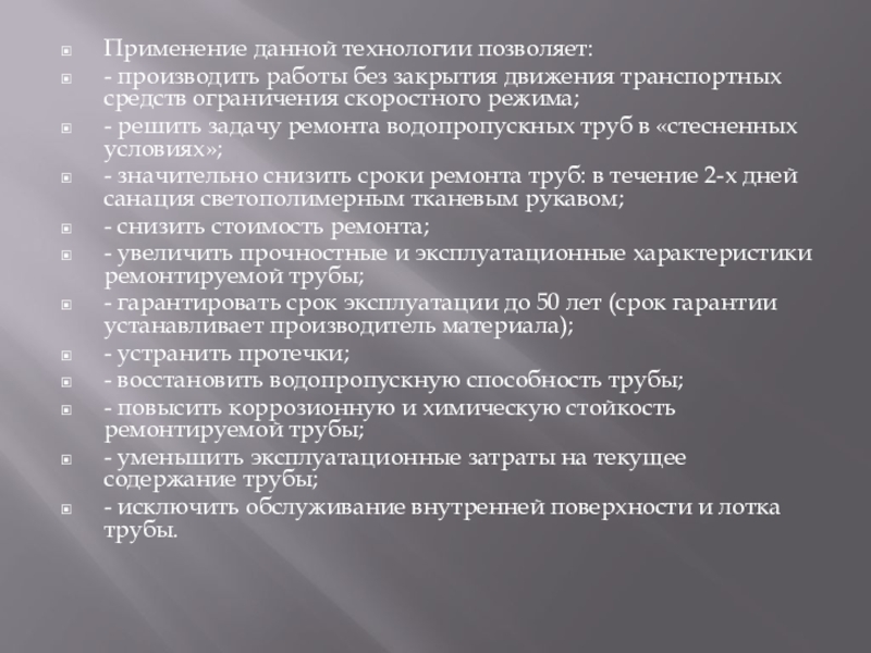 - уменьшить эксплуатационные затраты на текущее содержание трубы;