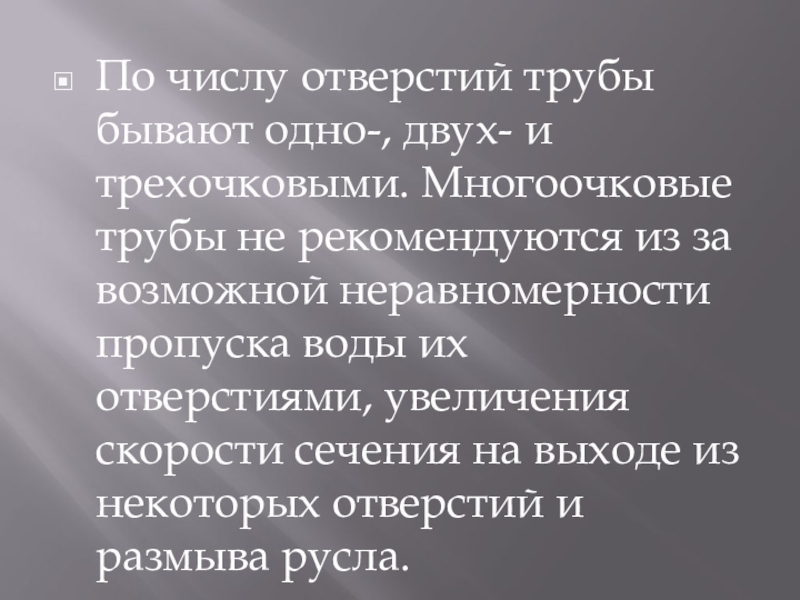Слайд 8По числу отверстий трубы бывают одно-, двух- и трехочковыми. Многоочковые трубы