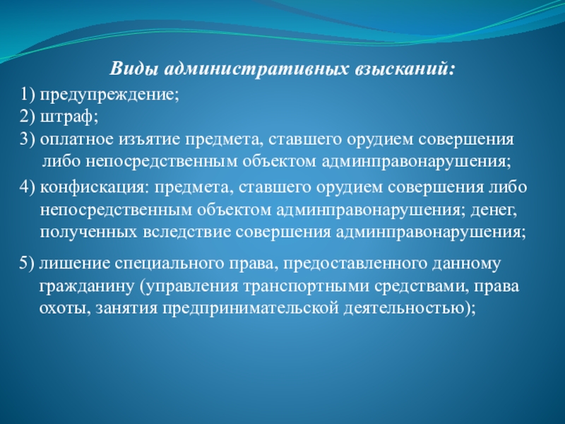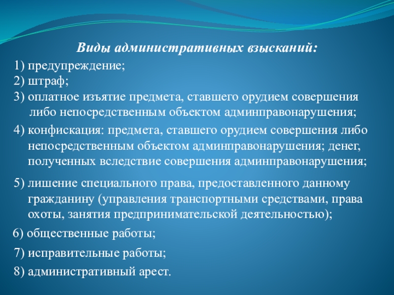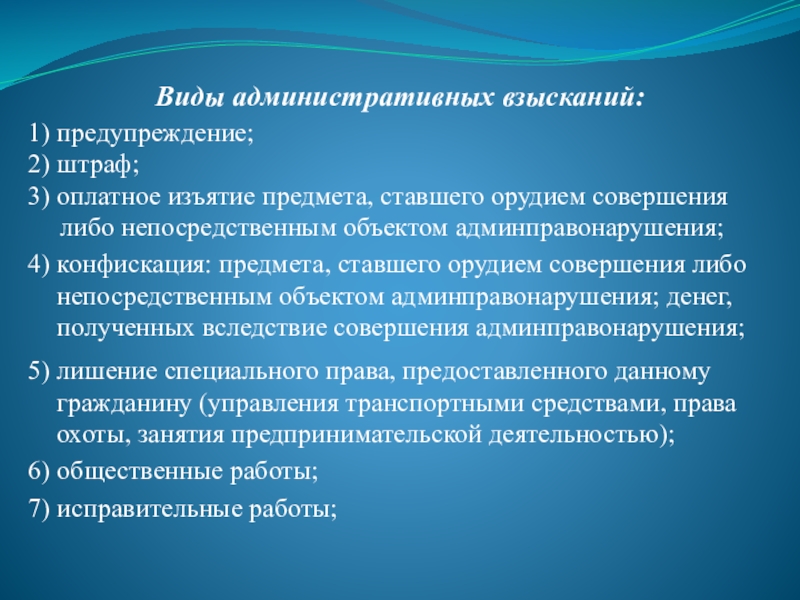 Слайд 45Виды административных взысканий: