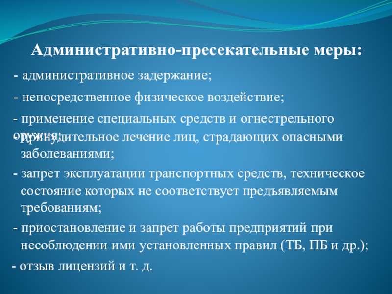 Слайд 36Административно-пресекательные меры: