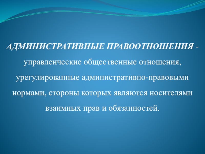 Слайд 9АДМИНИСТРАТИВНЫЕ ПРАВООТНОШЕНИЯ - управленческие общественные отношения, урегулированные административно-правовыми нормами, стороны которых