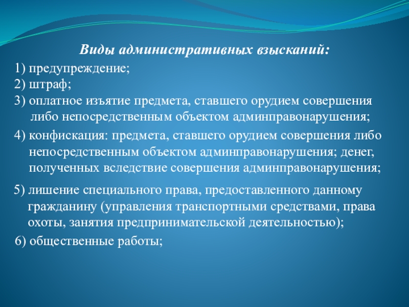 Слайд 47Виды административных взысканий: