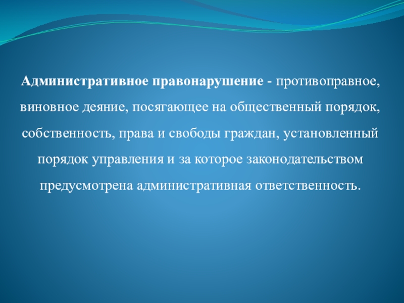 Слайд 39Административное правонарушение - противоправное, виновное деяние, посягающее на общественный порядок, собственность,