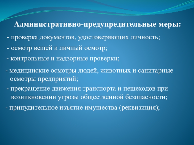 Слайд 24Административно-предупредительные меры: