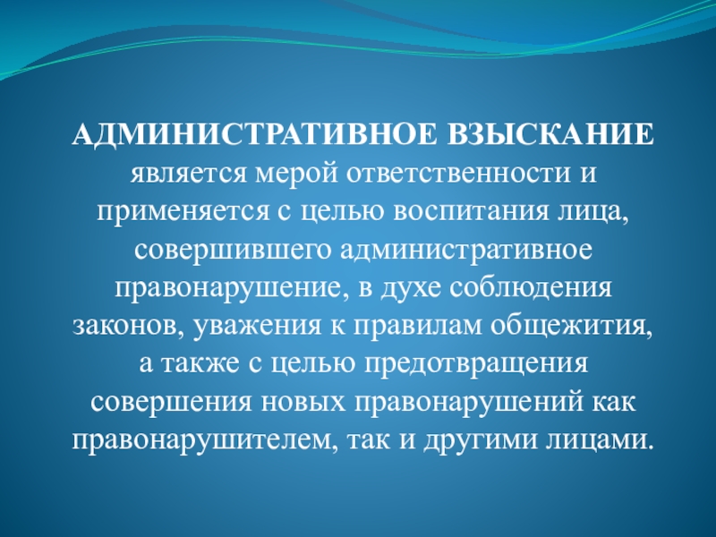 Слайд 42АДМИНИСТРАТИВНОЕ ВЗЫСКАНИЕ является мерой ответственности и применяется с целью воспитания лица,