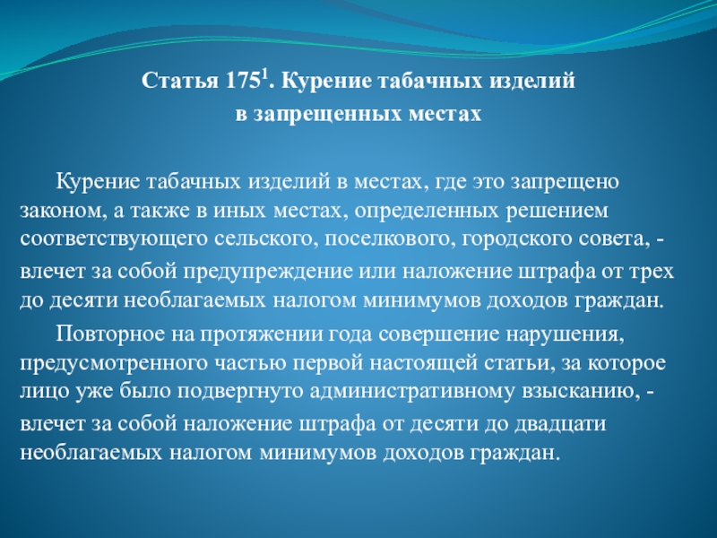 Слайд 55Статья 1751. Курение табачных изделий