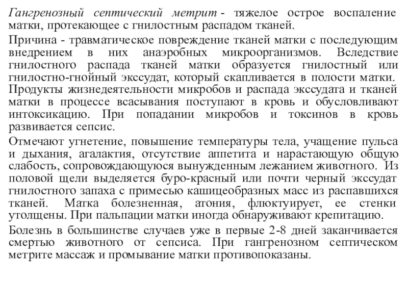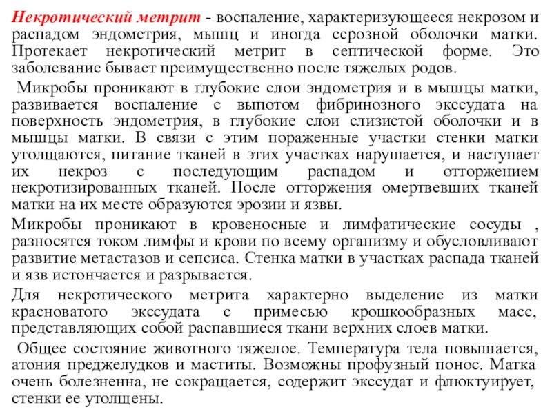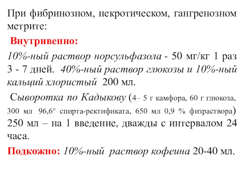 Слайд 99При фибринозном, некротическом, гангренозном метрите: