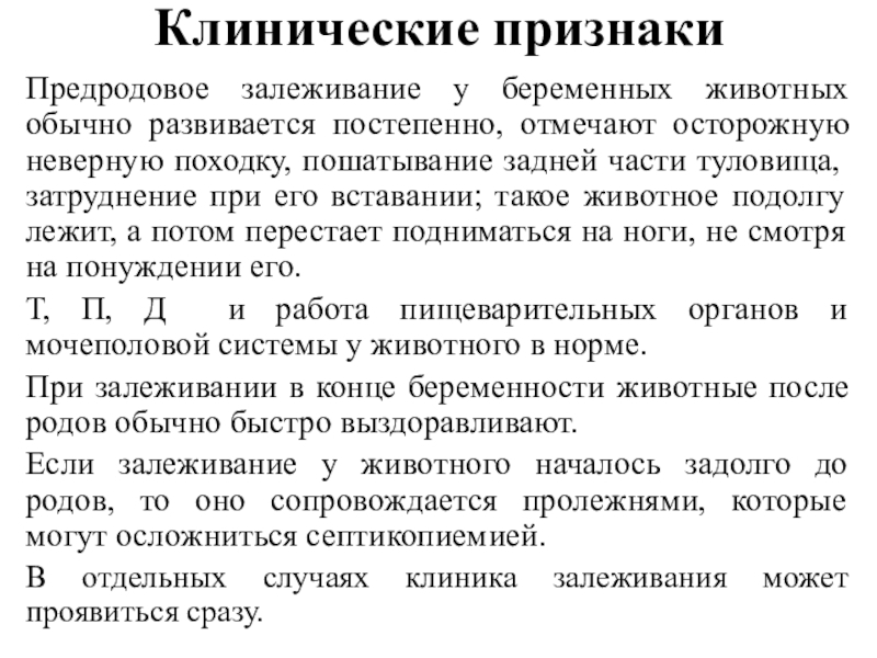 Предродовое залеживание у беременных животных обычно развивается постепенно, отмечают осторожную