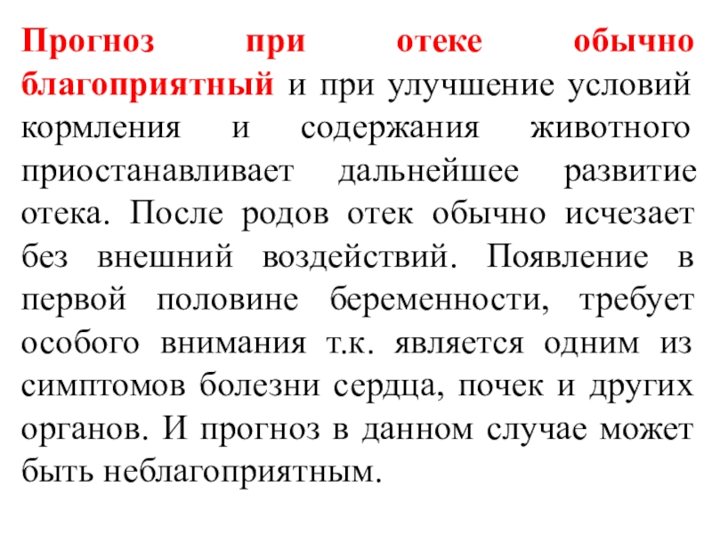 При залеживании в конце беременности животные после родов обычно быстро выздоравливают.