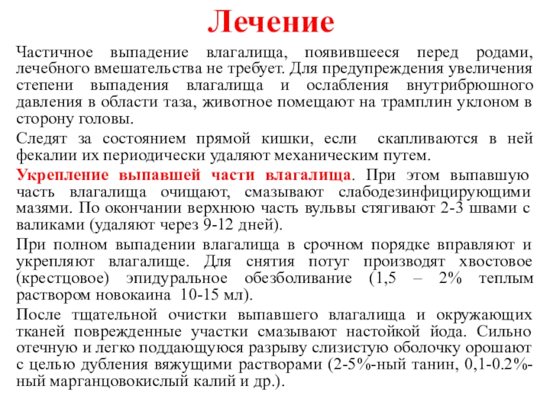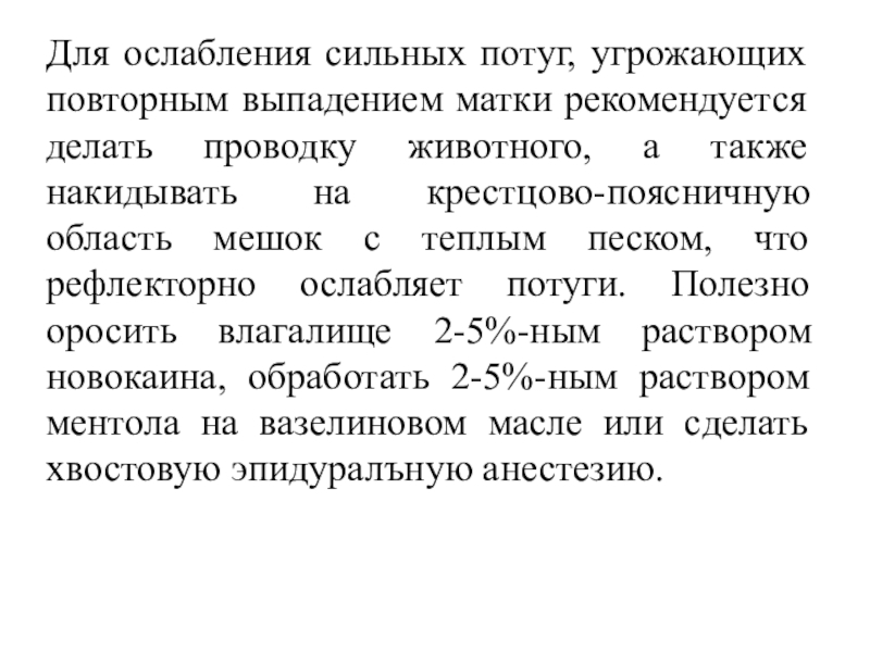 полом. В отдельных случаях потуги прекращаются после осторожной и непродолжительной проводки животного. На крестец и на поясницу накладываем горячие припарки из сенной трухи.