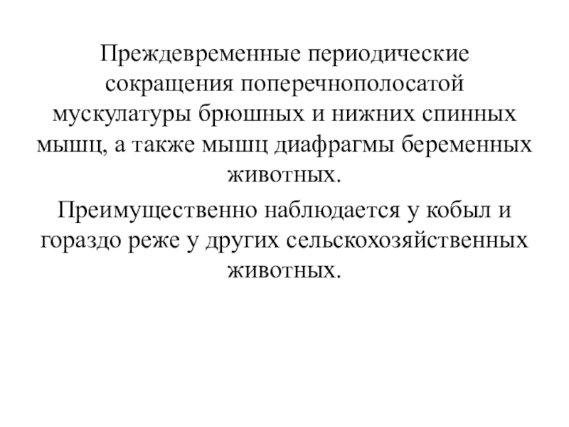 Слайд 9Преждевременные периодические сокращения поперечнополосатой мускулатуры брюшных и нижних спинных мышц, а
