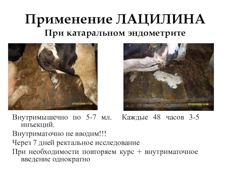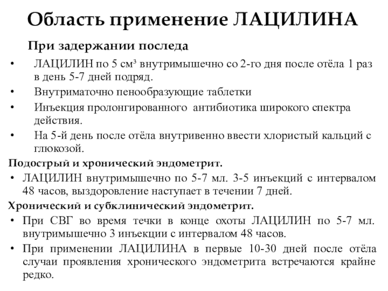 При применении ЛАЦИЛИНА в первые 10-30 дней после отёла случаи проявления хронического эндометрита встречаются крайне редко.