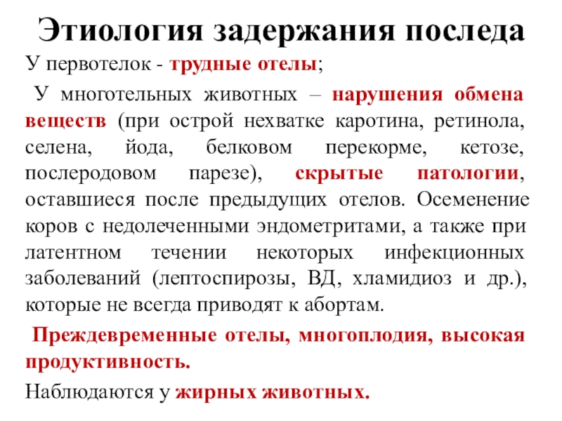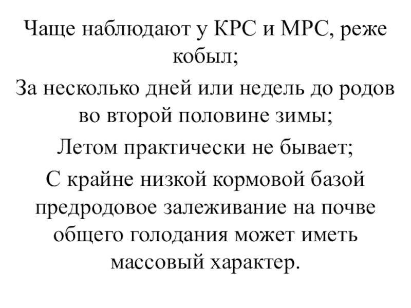 С крайне низкой кормовой базой предродовое залеживание на почве общего голодания может иметь массовый характер.