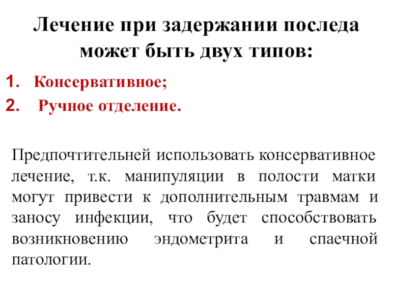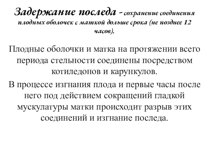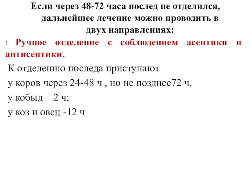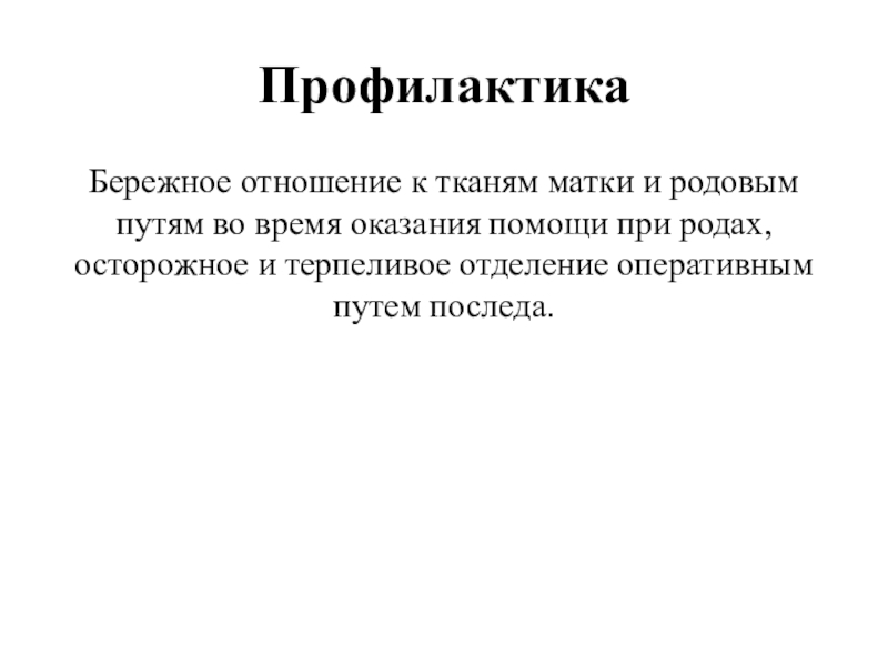 помощи при родах, осторожное и терпеливое отделение оперативным путем последа.