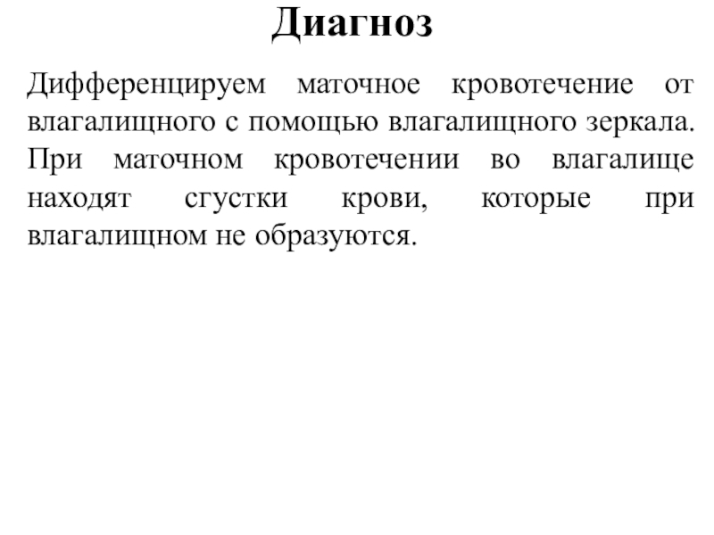Дифференцируем маточное кровотечение от влагалищного с помощью влагалищного зеркала. При маточном
