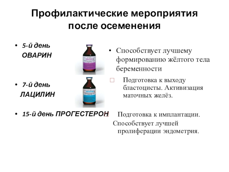 С целью профилактики воспаления матки и септических осложнений, назначают сульфаниламидные препараты и антибиотики. Внутриматочно вводят антибактериальные свечи.