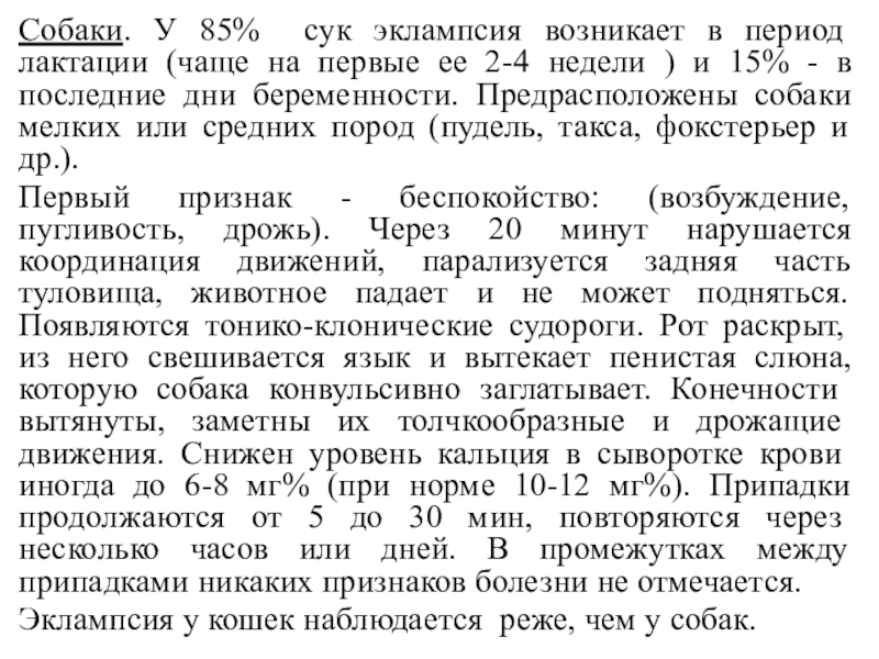 Слайд 103Собаки. У 85% сук эклампсия возникает в период лактации (чаще на