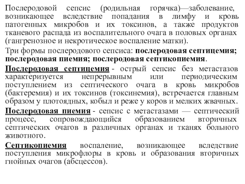 чувствительность организма матери к продуктам обмена, выделяемым плодом и плацентой или к продуктам распада лохий и материнской плаценты.