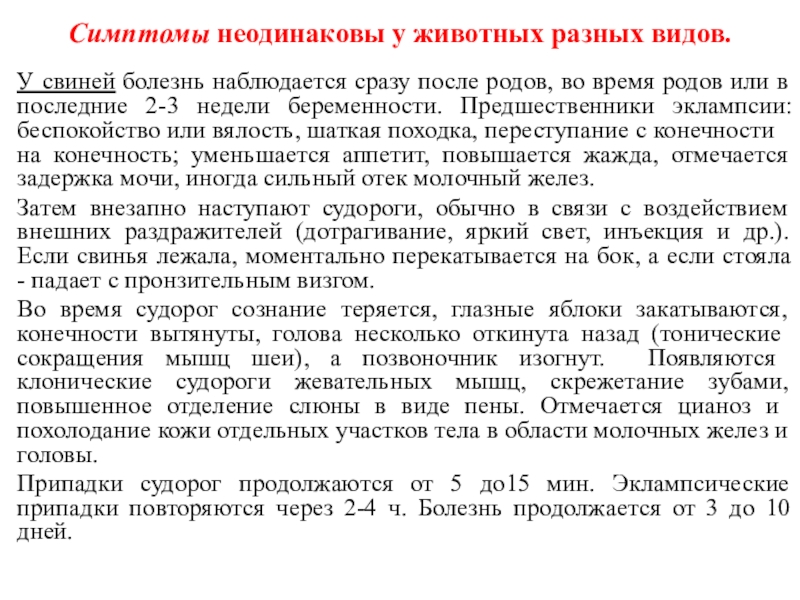 Слайд 102Симптомы неодинаковы у животных разных видов.
