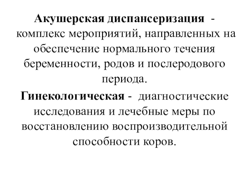 Слайд 37Акушерская диспансеризация - комплекс мероприятий, направленных на обеспечение нормального течения беременности,