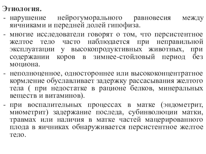 (гипотония и атония преджелудков, травматический ретикулит, разнообразные интоксикации и отравления организма испорченными кормами), оофорит, кисты и персистентное желтое тело яичника, хронические эндометриты.
