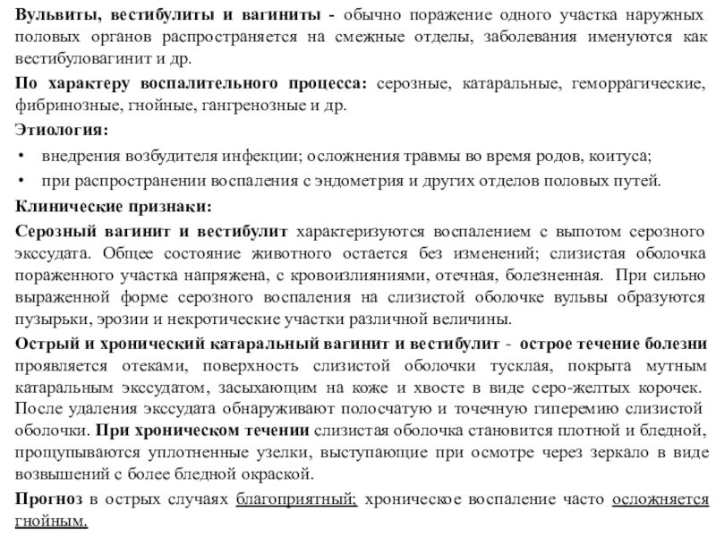 органов распространяется на смежные отделы, заболевания именуются как вестибуловагинит и др.
