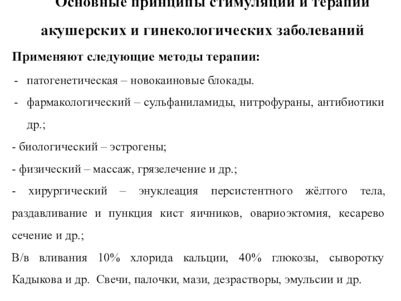 В/в вливания 10% хлорида кальции, 40% глюкозы, сыворотку Кадыкова и др. Свечи, палочки, мази, дезрастворы, эмульсии и др.