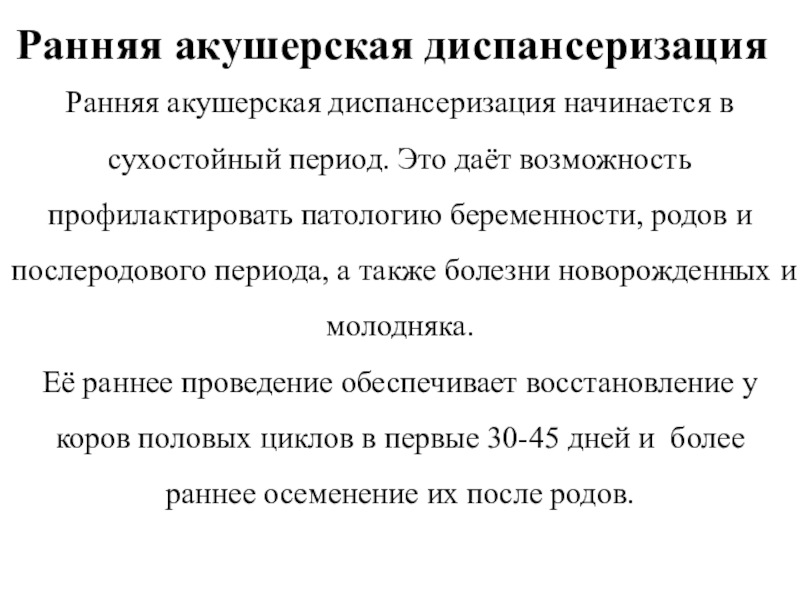Ранняя акушерская диспансеризация начинается в сухостойный период. Это даёт
