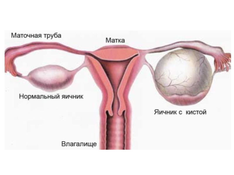 Слайд 19Фолликулярные и лютеиновые кисты яичников - это сферические полости, образуются в