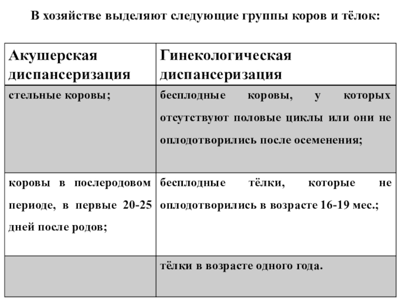 Слайд 38В хозяйстве выделяют следующие группы коров и тёлок: