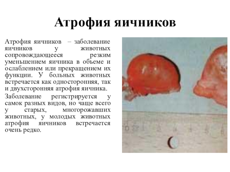 яичника в объеме и ослаблением или прекращением их функции. У больных животных встречается как односторонняя, так и двухсторонняя атрофия яичника.
