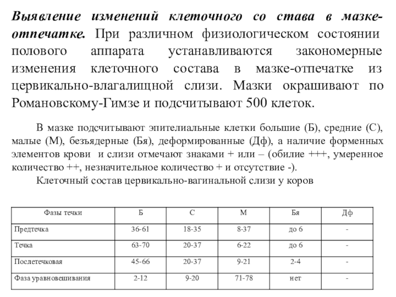 Слайд 51Выявление изменений клеточного со става в мазке-отпечатке. При различном физиологическом состоянии