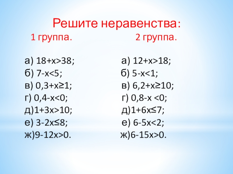 в) 0,3+x≥1; в) 6,2+x≥10;