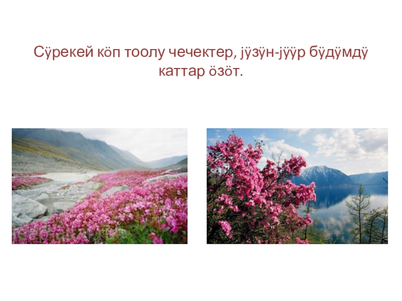 Слайд 10Сÿрекей кöп тоолу чечектер, jÿзÿн-jÿÿр бÿдÿмдÿ каттар öзöт.