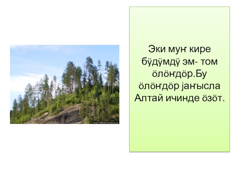 Слайд 9Эки муҥ кире бÿдÿмдÿ эм- том öлöҥдöр.Бу öлöҥдöр jаҥысла Алтай ичинде