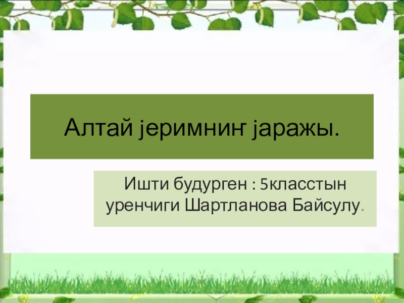 Презентация, доклад по алтайскому языку Алтай jеримниҥ jаражы.