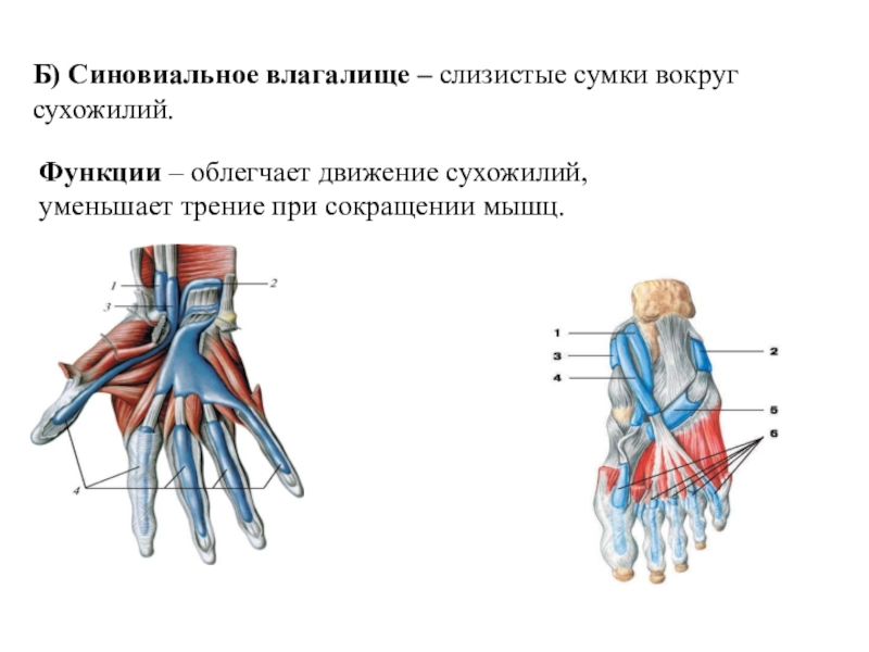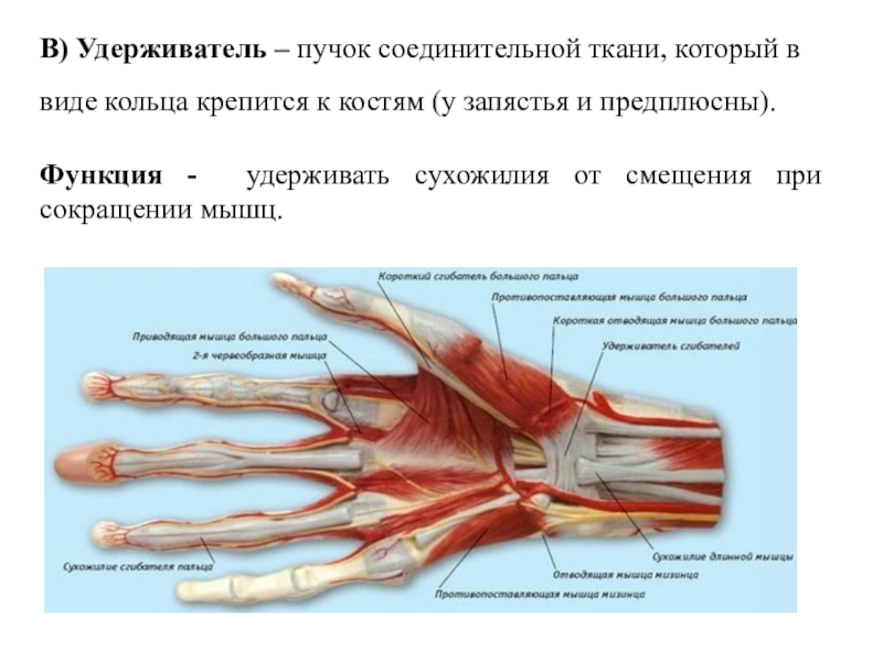 Функция - удерживать сухожилия от смещения при сокращении мышц.