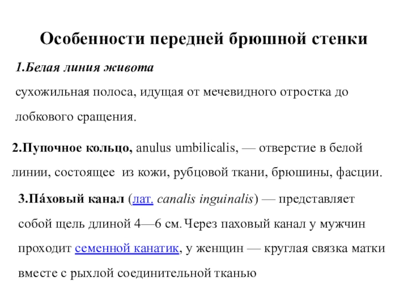 3.Пáховый канал (лат. canalis inguinalis) — представляет собой щель длиной 4—6 см. Через паховый канал у мужчин проходит семенной канатик, у женщин — круглая связка матки вместе с рыхлой соединительной тканью