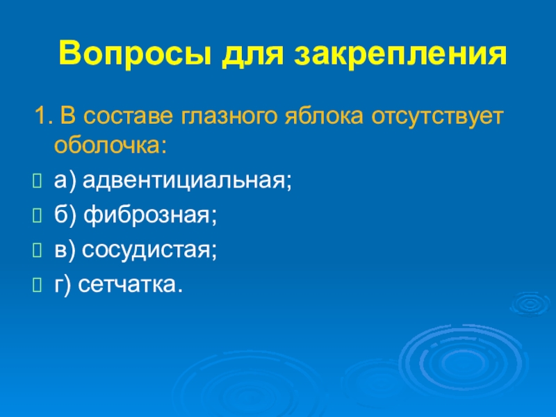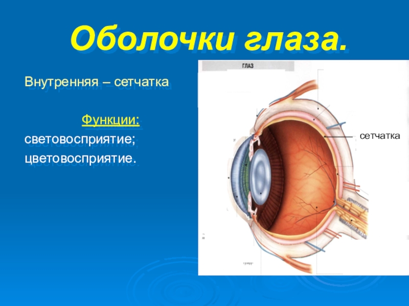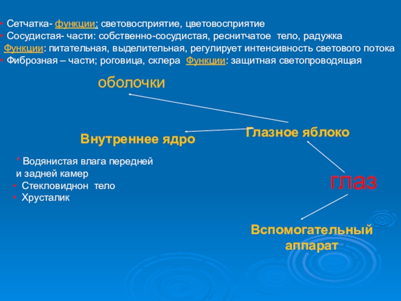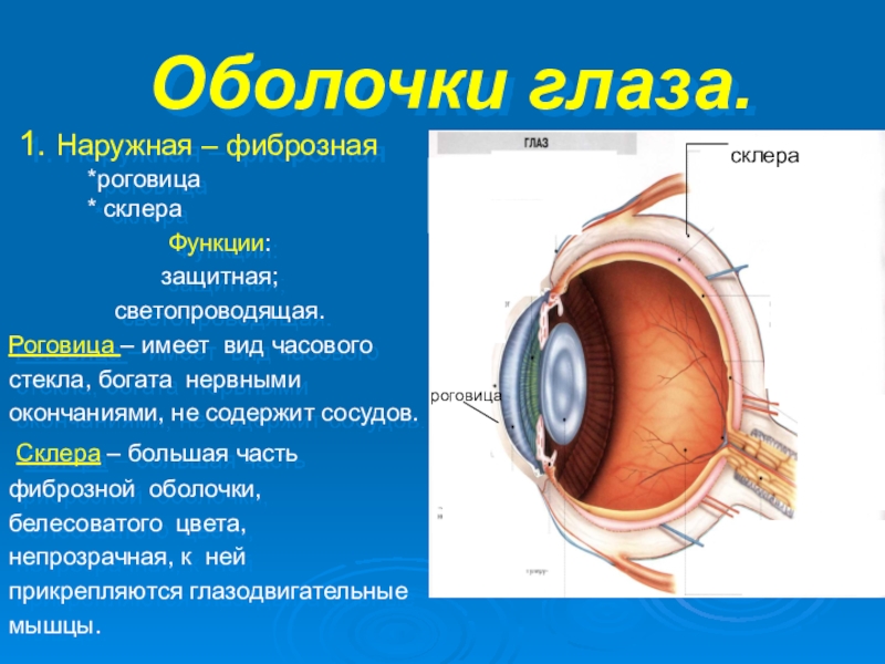 Фиброзная – части; роговица, склера Функции: защитная светопроводящая