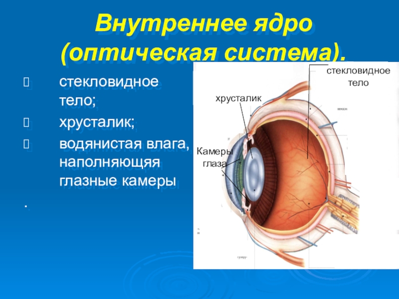 Сосудистая- части: собственно-сосудистая, реснитчатое тело, радужка