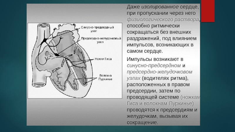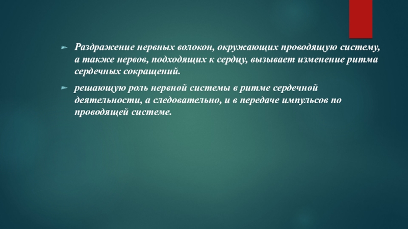 Слайд 12Раздражение нервных волокон, окружающих проводящую систему, а также нервов, подходящих к