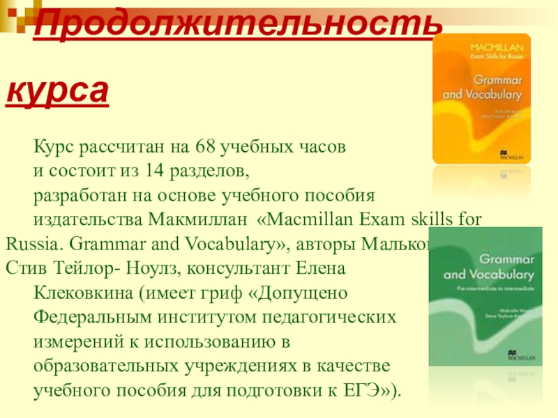 издательства Макмиллан «Macmillan Exam skills for Russia. Grammar and Vocabulary», авторы Мальком Манн и Стив Тейлор- Ноулз, консультант Елена