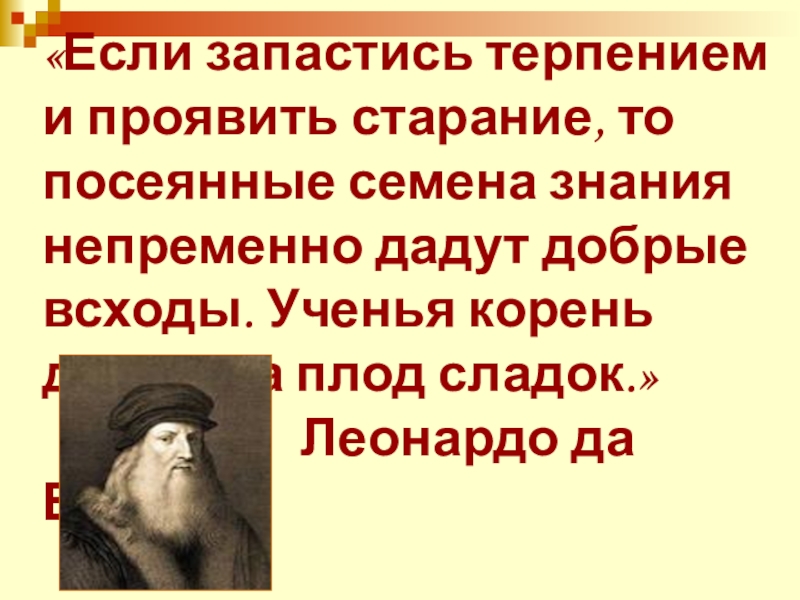 «Если запастись терпением и проявить старание, то посеянные семена знания непременно