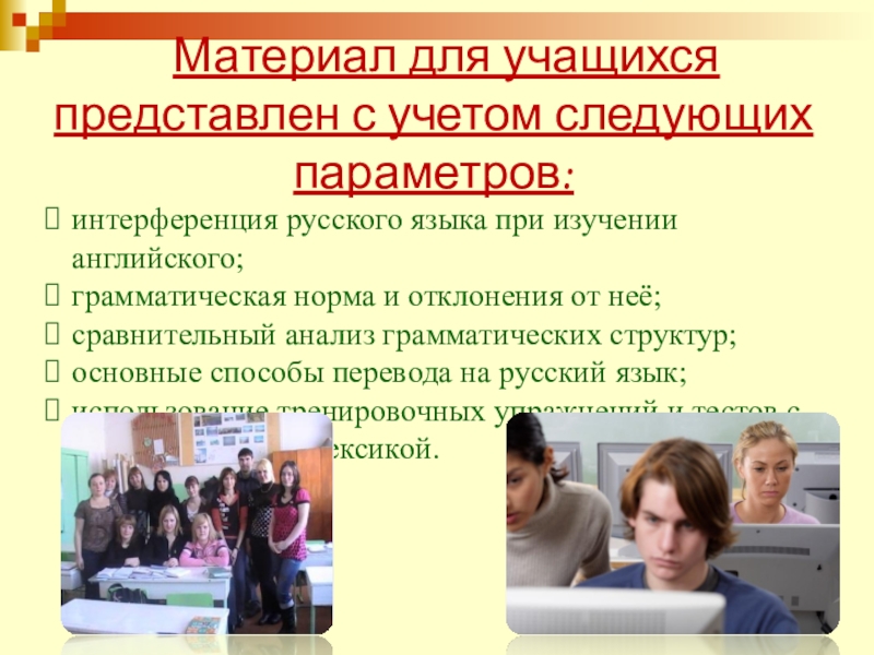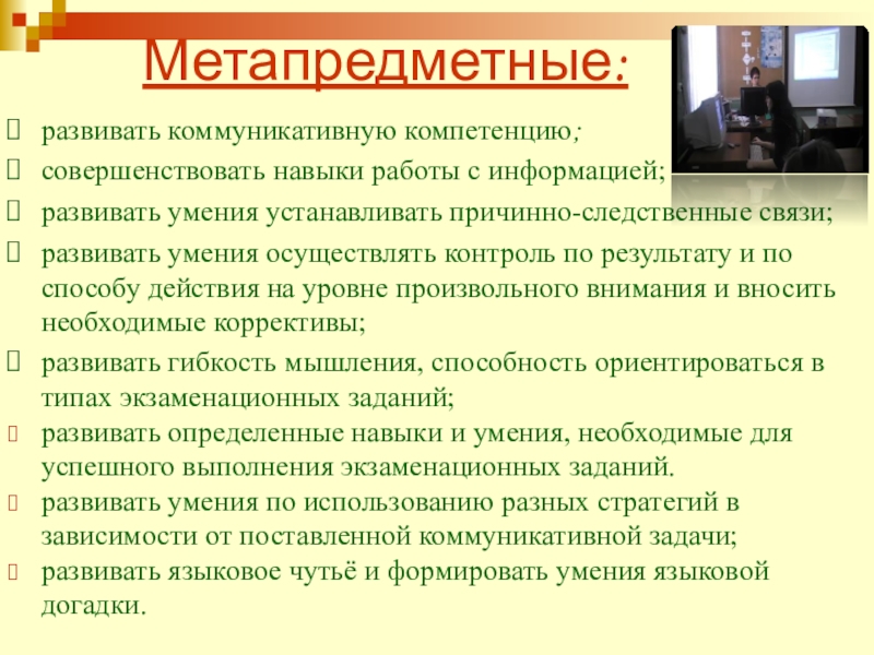 Слайд 12обучать пониманию того, как грамматическая конструкция влияет на выбор лексической единицы;;