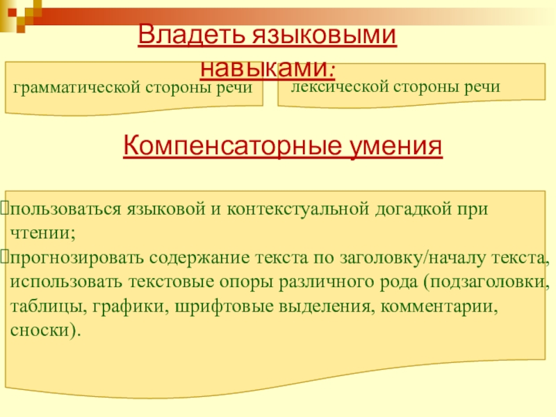 прогнозировать содержание текста по заголовку/началу текста, использовать текстовые опоры различного рода (подзаголовки, таблицы, графики, шрифтовые выделения, комментарии, сноски).