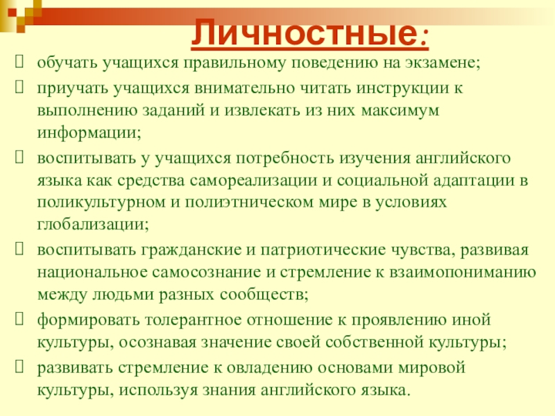 воспитывать у учащихся потребность изучения английского языка как средства самореализации и социальной адаптации в поликультурном и полиэтническом мире в условиях глобализации;