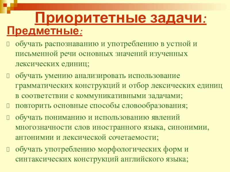 обучать употреблению морфологических форм и синтаксических конструкций английского языка;