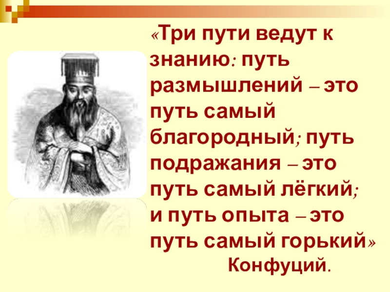 Слайд 37«Три пути ведут к знанию: путь размышлений – это путь самый