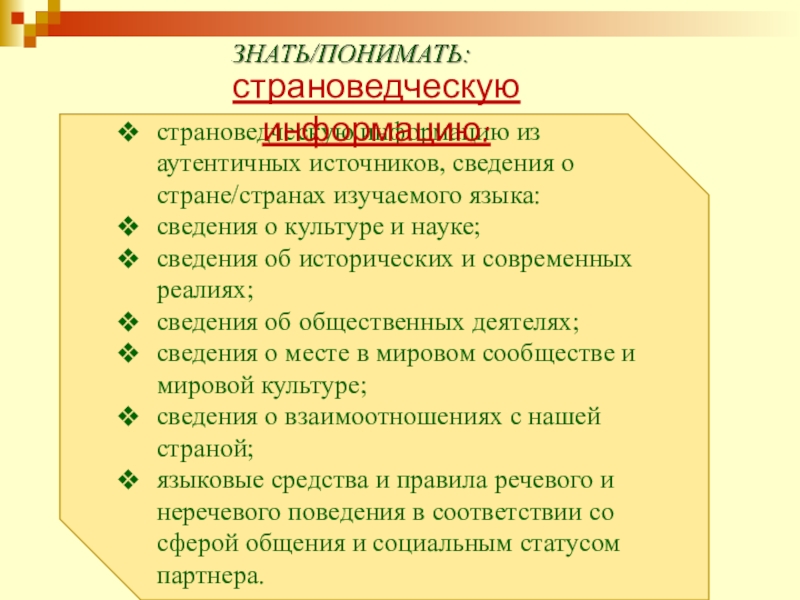 страноведческую информацию из аутентичных источников, сведения о стране/странах изучаемого языка: