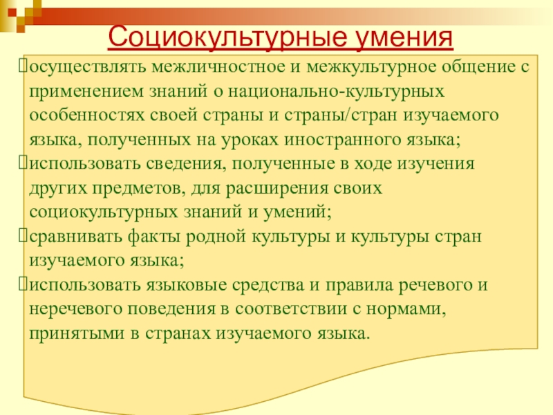 использовать сведения, полученные в ходе изучения других предметов, для расширения своих социокультурных знаний и умений;
